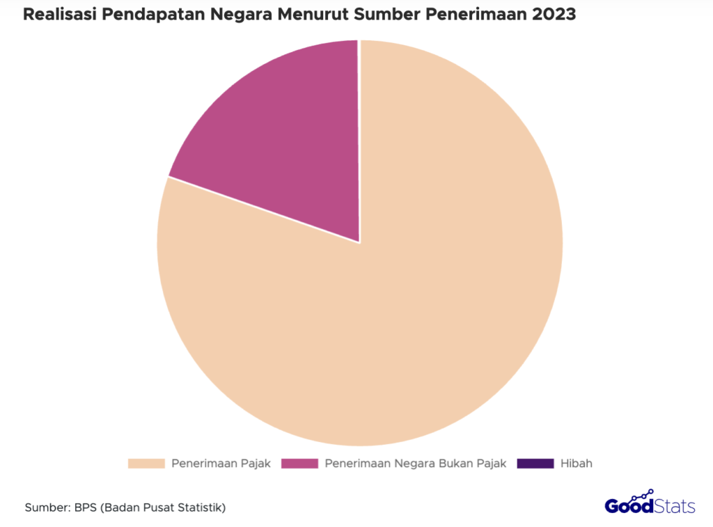 Berdasarkan data Badan Pusat Statistik (BPS) pada tahun 2023, total pendapatan negara tercatat sebesar Rp2.637 triliun, dengan sekitar 80,32% berasal dari penerimaan pajak. Penerimaan pajak ini memainkan peran utama dalam mendukung stabilitas fiskal dan menggerakkan perekonomian Indonesia.
